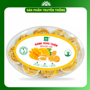 Thành phần chính: Xoài chín sấy dẻo, đường, bánh phồng.