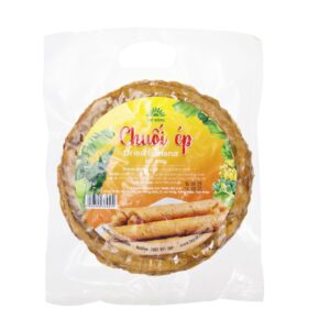 Thành phần: Chuối (50%), đậu phộng (20%), đường, gừng, mè trắng, nước cốt dừa, bánh phồng.