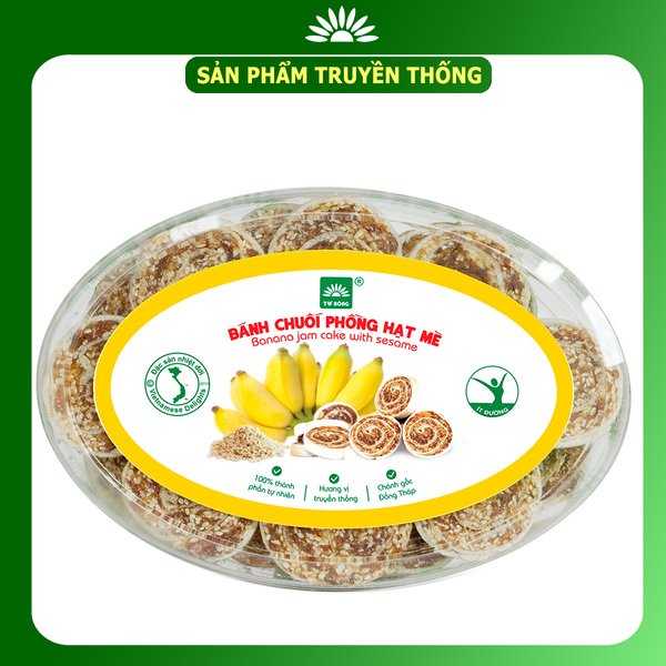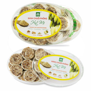 Chuối (50%), mè trắng (30%), đường, gừng, nước cốt dừa, bánh phồng.